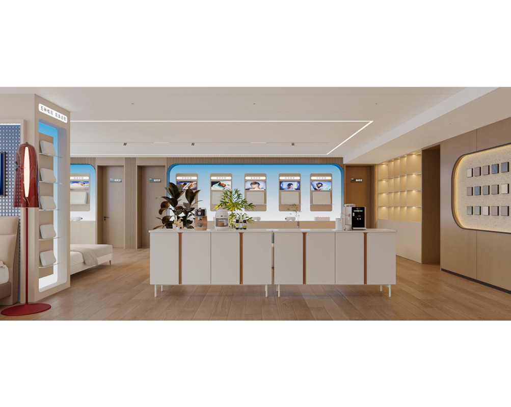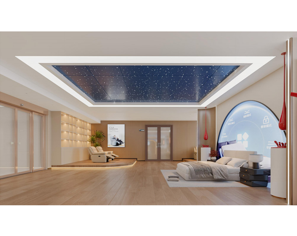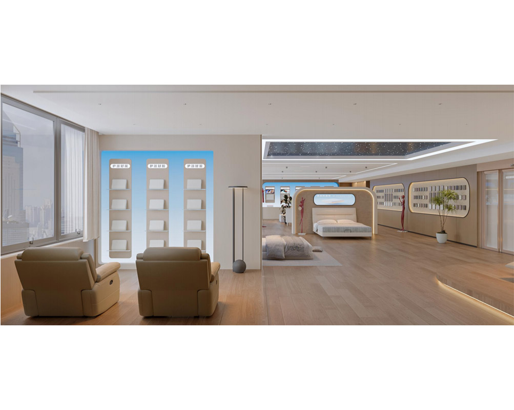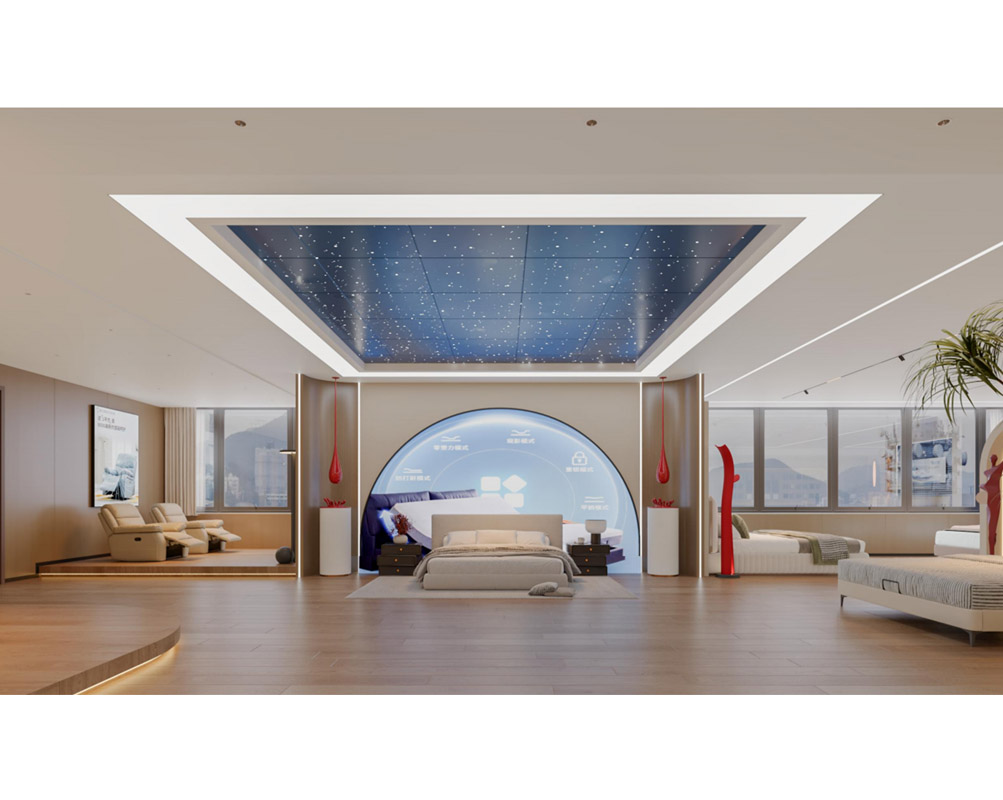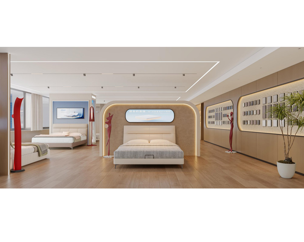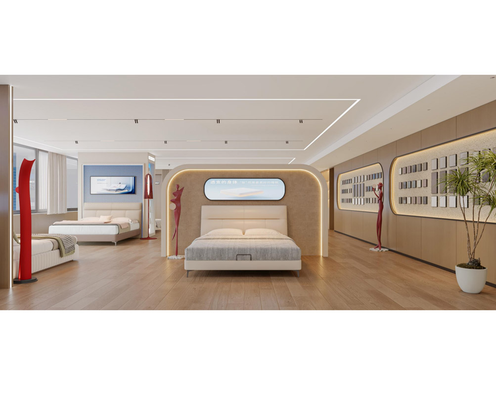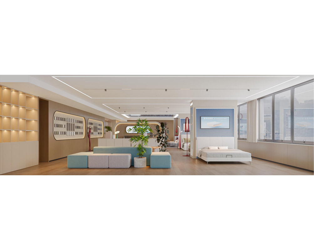 本项目位于济南黄台家居广场核心区域,总面积 700 余平方米,整合床垫品牌展厅、开放式办公区、多功能会议室三大功能板块。以专业软装设计为核心,统一规划色彩、灯光、材质与布局,兼顾品牌展示、商务接待、团队办公与会议培训需求。空间通透大气、格调统一、实用高效,充分体现品牌实力与专业服务能力。