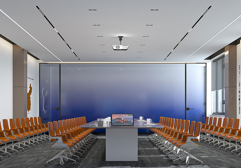 4.  电子科技公司会议室装修设计中,红色元素的运用可打造空间亮点,增添趣味感。多媒体设备配置与墙面软装设计均遵循便捷性与功能性原则,全力为员工打造高效的头脑风暴与沟通协作空间。