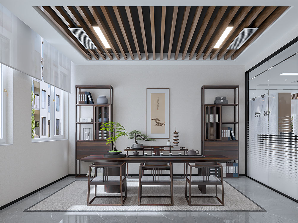 新中式办公室装修风格_新中式办公效果图_新中式办公空间解析